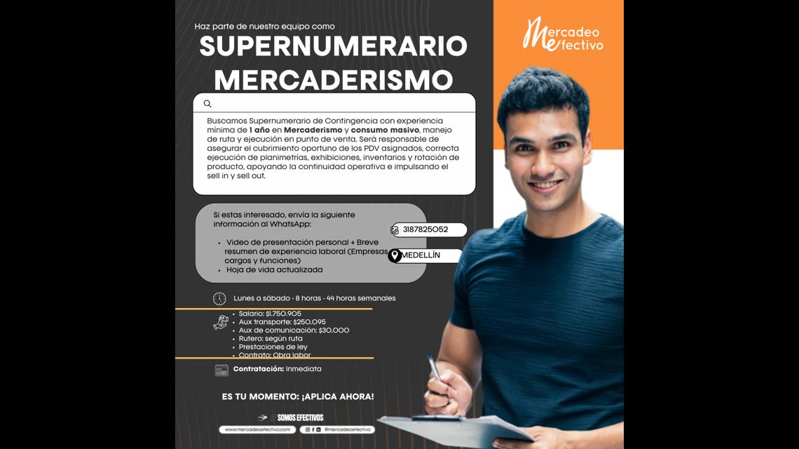Importante compañía del sector de consumo masivo requiere Supernumerario de Contingencia para brindar soporte operativo en ruta, garantizando el cubrimiento adecuado de los puntos de venta asignados y la ejecución correcta de los estándares del cliente.